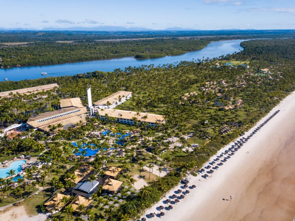 Localizado no sul da Bahia — terra eternizada por Jorge Amado, marcada pelo ciclo do cacau, pela arquitetura histórica e por um litoral generoso — o Transamerica Comandatuba ocupa a Ilha de Comandatuba