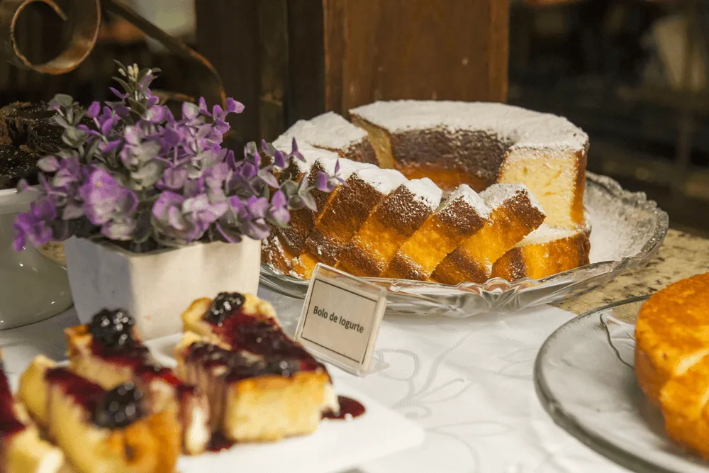 O café da manhã do Canto Verde é uma celebração dos sentidos e da tradição de Gramado. Preparado sob a coordenação de Noeli Noel, o buffet é um verdadeiro banquete artesanal com cucas douradas e crocantes, strudel de maçã, bolos caseiros (inclusive opções sem glúten e o clássico de chocolate), além de tortas salgadas de sardinha e de legumes, pão de queijo quentinho, lanches vegetarianos e veganos, e uma seleção de geleias, queijos e frutas frescas. Tudo servido com charme e generosidade, em meio ao perfume do café recém-passado e ao colorido das flores que enfeitam as mesas.
