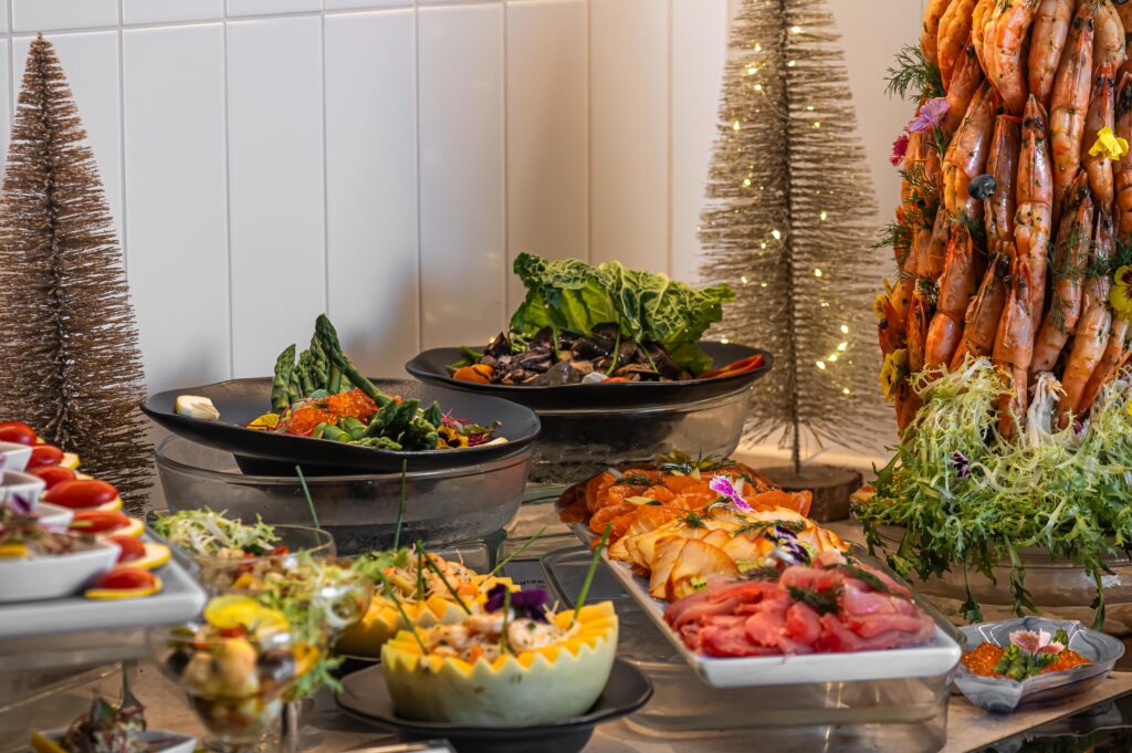 O início da noite conta com entradas e antepastos como queijos e frios selecionados, tender ao molho de frutas tropicais, carpaccio de carne com rúcula e parmesão, mini folhado de bacalhau e alho-poró e os antepastos do chef. Na ala das saladas, há opções como salada caprese, rúcula com tomate seco, grão-de-bico com bacalhau, quinoa com legumes, tabule de couscous marroquino, mix de folhas nobres com morango e castanhas, salada Waldorf e lentilhas de ano novo com bacon defumado.