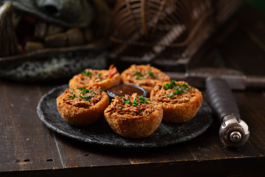 Tudo na Taverna Medieval é muito lúdico e performático. A história da hamburgueria temática que nasceu a partir de um mochilão pela Europa realizado pelo casal Hellen Lepiani e Nelson Ferreira, sócios e idealizadores da casa, é inspiradora. Motivados pelas regiões medievais e dos vikings, que conheceram ao longo de um mochilão pelo continente europeu, como a Escócia, reconhecida como Patrimônio Mundial da UNESCO por seu conjunto urbano medieval preservado, além de Noruega, Suécia e Escandinávia, o casal teve a ideia de criar no Brasil, um espaço que unisse gastronomia e entretenimento de forma imersiva. Há nove anos funcionando na capital paulista, a Taverna Medieval se consolidou como um projeto respeitado e amplamente acolhido pelo público. Localizada no bairro da Vila Mariana, a casa surpreende já na recepção, quando você é recebido por atendentes caracterizados e convidados a mergulhar em outra época. “A cada viagem, tínhamos uma ideia. E aqui, no restaurante, os objetos decorativos foram e continuam sendo trazidos dos países onde passamos“, explica Hellen que é a simpatia em pessoa. “Meu marido é um expert em jogos como o RPG e por isso também trouxemos esse universo aqui para o restaurante“.