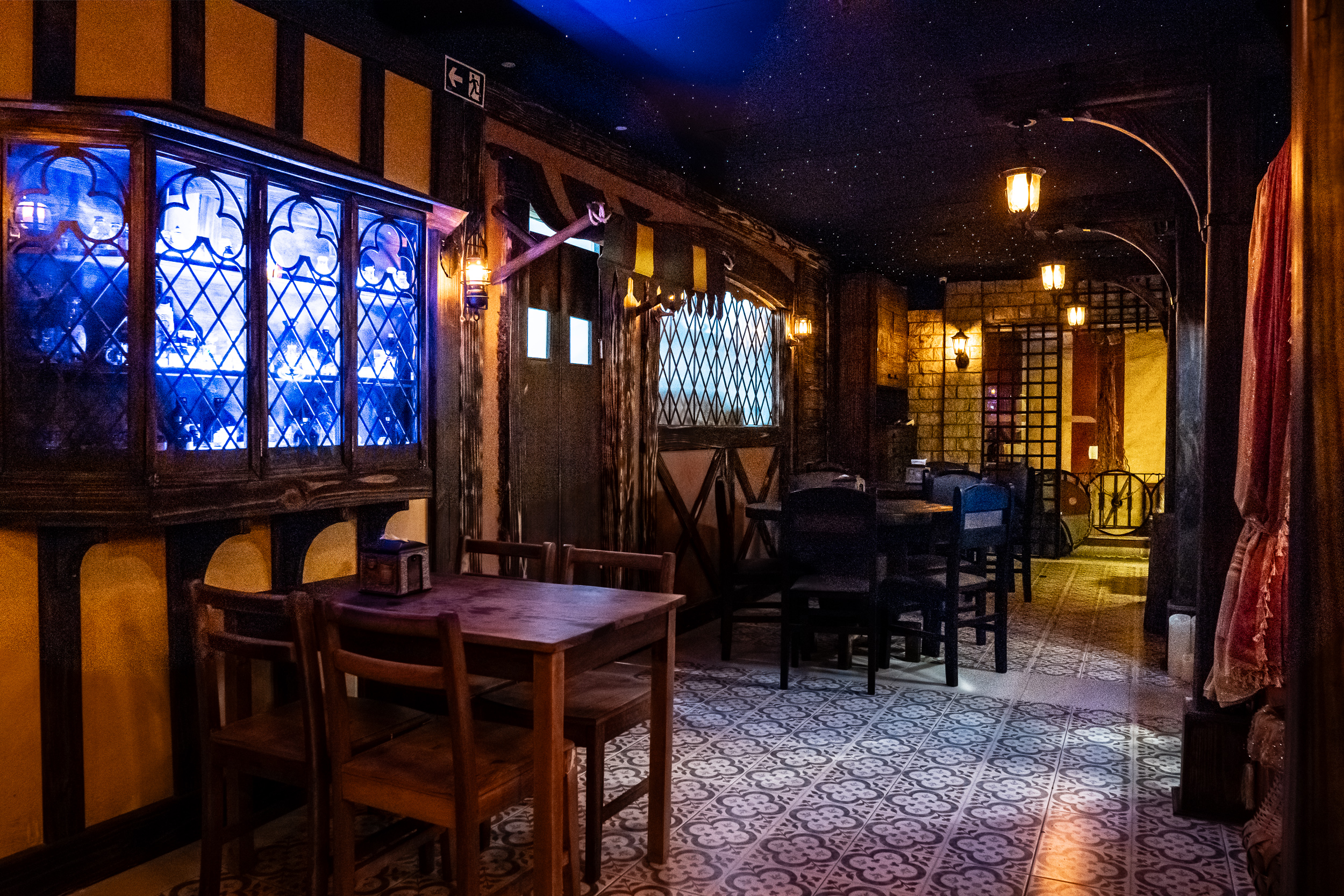 Com inspiração nas vilas muradas, nos costumes da Idade Média e na forte presença do universo da fantasia, a Taverna Medieval inaugurou recentemente novos ambientes em seu andar superior: o Mercado Medieval, o Bar e a Casa da Bruxa, todos com mobiliário cuidadosamente articulado para cada espaço. No Mercado Medieval, você pode desfrutar da atmosfera lúdica das mesas temáticas e ambientais, como as antigas tendas, cada uma dedicada a um ofício ou universo específico. Entre elas estão o Ferreiro, com espadas e armaduras; o Herbalista, com plantas, unguentos e folhas; o Mago, que remete aos mistérios dos mundos mágicos; o Explorador, com produtos de regiões longínquas; e o Vendedor Árabe. Todas permitem reservas para banquetes, ampliando a sensação de época, reforçada ainda pela presença cenográfica da Taverna e da Loja de Poções.