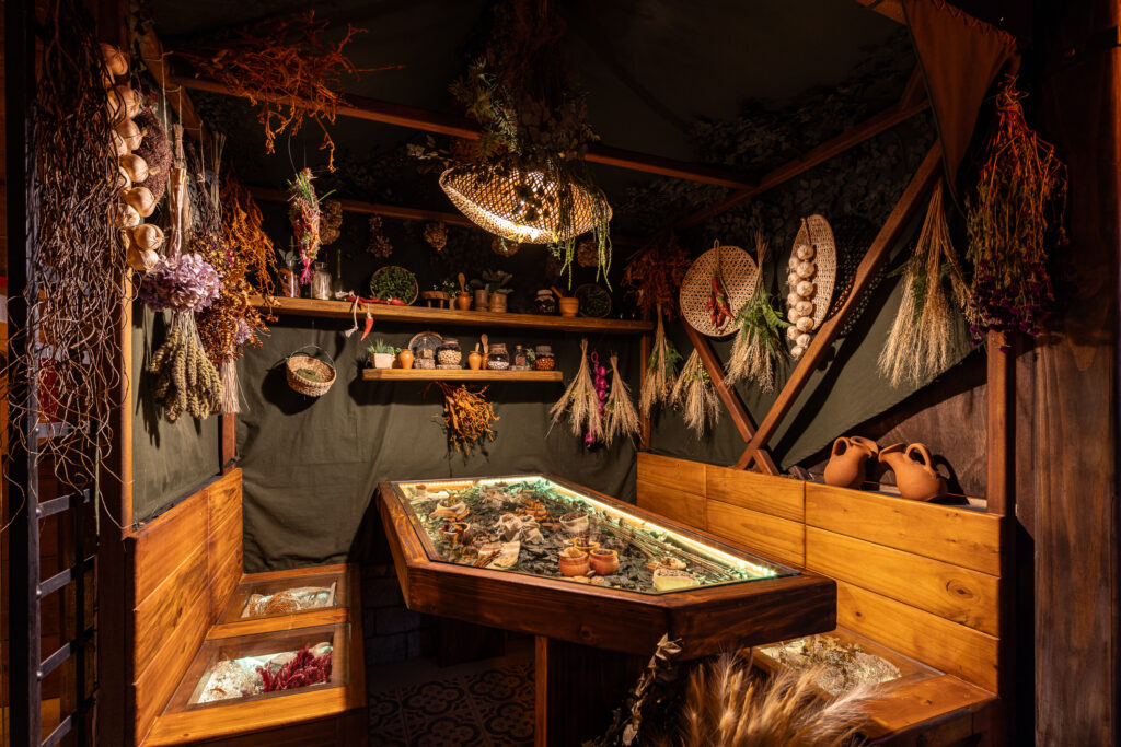 Você também pode acessar o Bar da Pequena Ilha e, ao sair, conhecer, discretamente escondida, a Casa da Bruxa, ambiente criado para homenagear as mulheres injustiçadas durante a Idade Média. Após uma extensa pesquisa histórica, o espaço foi pensado na trajetória das bruxas e nos contos de fadas, ressaltando a mística, as lendas, a força da natureza e o papel das curandeiras e guardiãs do conhecimento ancestral. O ambiente envolve uma atmosfera noturna e intimista, reforçando o caráter simbólico e narrativo da experiência.