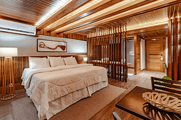 Desenhado estrategicamente na região do Tarumã, a poucos quilômetros de Manaus, o Amazon Ecopark Jungle Lodge está inserido em uma reserva privada em meio à floresta amazônica e se destaca pela escala de sua estrutura. As acomodações, 70 suítes, estão distribuídas em diferentes categorias, conectadas por passarelas elevadas em meio à mata. Um de seus diferenciais mais concretos é a presença de quatro piscinas naturais, além de uma “praia de rio”, algo único entre lodges de selva. A programação inclui trilhas interpretativas, passeios de barco, observação de fauna e visitas a áreas de reabilitação de animais silvestres, o que torna o Amazon ainda mais especial.