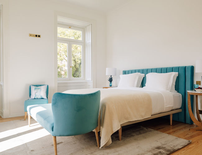 Os quartos refletem o cuidado com os hóspedes e são de uma beleza incontestável. Repletos de detalhes, com uma decoração clássica e ao mesmo tempo moderna, todos incluem camas espaçosas, geladeira SMEG abastecida com uma seleção de bebidas de cortesia, incluindo vinho, guloseimas caseiras e saudáveis, além de flores e frutas frescas na chegada. Lisboa é abençoada com um clima excelente e, mesmo em fevereiro, é possível aproveitar o sol com um café moído na hora ou uma taça de espumante português. Entre as categorias estão a Suíte Grand, Suíte Signature, Jardim de Assinatura, Assinatura, Jardim dos Sonhos, Banho dos Sonhos e Aconchegante, todas mantendo o mesmo padrão de conforto, charme e hospitalidade que define o Palácio Príncipe Real.