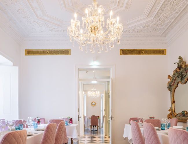 Durante mais de um século, o Palácio Príncipe Real foi uma residência familiar elegante e muito apreciada. Construído em 1877, o Palácio sempre foi uma conquista da família Teixeira da Mota, de Lisboa, e um orgulho da sociedade lisboeta, que ainda hoje recorda com carinho as festas ali realizadas. Quando Gail e Miles conheceram o prédio abandonado, em 2014, apaixonaram-se imediatamente pelo espaço, pelas características originais e pelo jardim extraordinário, assumindo o compromisso de recriar o luxo decadente de tempos passados, aliado a todo o conforto da vida moderna.