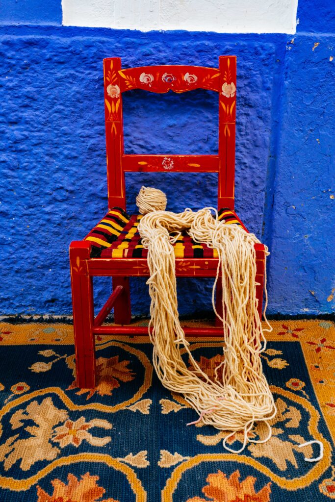 - A lã utilizada é tradicionalmente tingida com pigmentos naturais, prática que, historicamente, incluía o uso de plantas regionais.