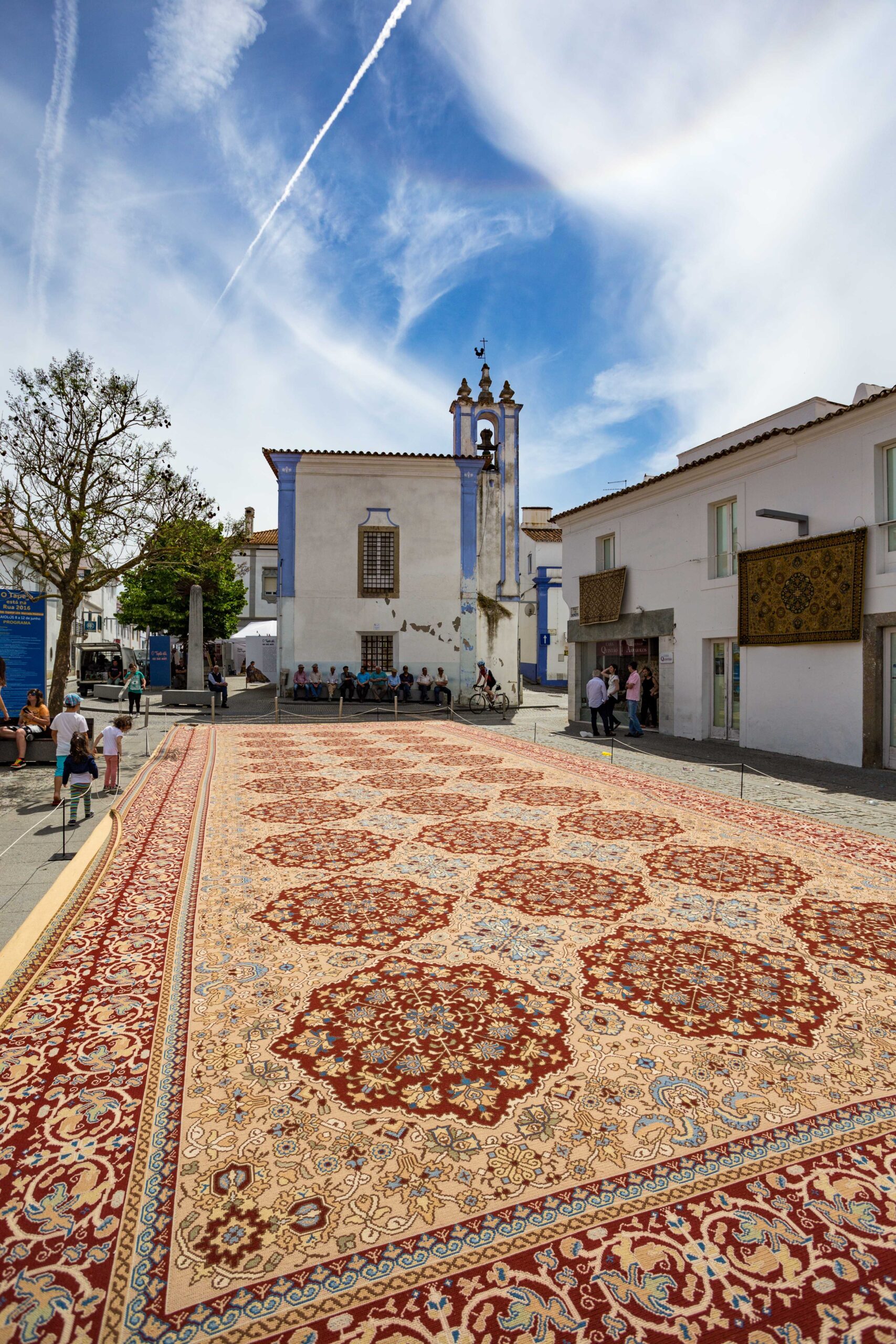 Percorrer as ruas de pedra de Arraiolos é encontrar ateliês e lojas especializadas onde cada tapete é tratado como obra singular. Em maio, o evento “O Tapete está na Rua” transforma a vila em um museu a céu aberto, com peças expostas em fachadas, varandas e praças, acompanhadas de programação cultural que inclui música, exposições e gastronomia regional. O Centro Interpretativo do Tapete de Arraiolos, instalado no antigo Hospital da Misericórdia, na Praça da República, aprofunda o entendimento sobre a tradição, incluindo a antiga atividade de tinturaria local. Próximo dali, o Monumento à Tapeteira e o tapete desenhado em pedra reforçam o orgulho coletivo pela arte. A experiência se completa com a visita ao Castelo de Arraiolos, fortificação circular erguida no Monte de São Pedro, e com a hospedagem na Pousada de Arraiolos, instalada no Convento de Nossa Senhora da Conceição, do século XVI.
