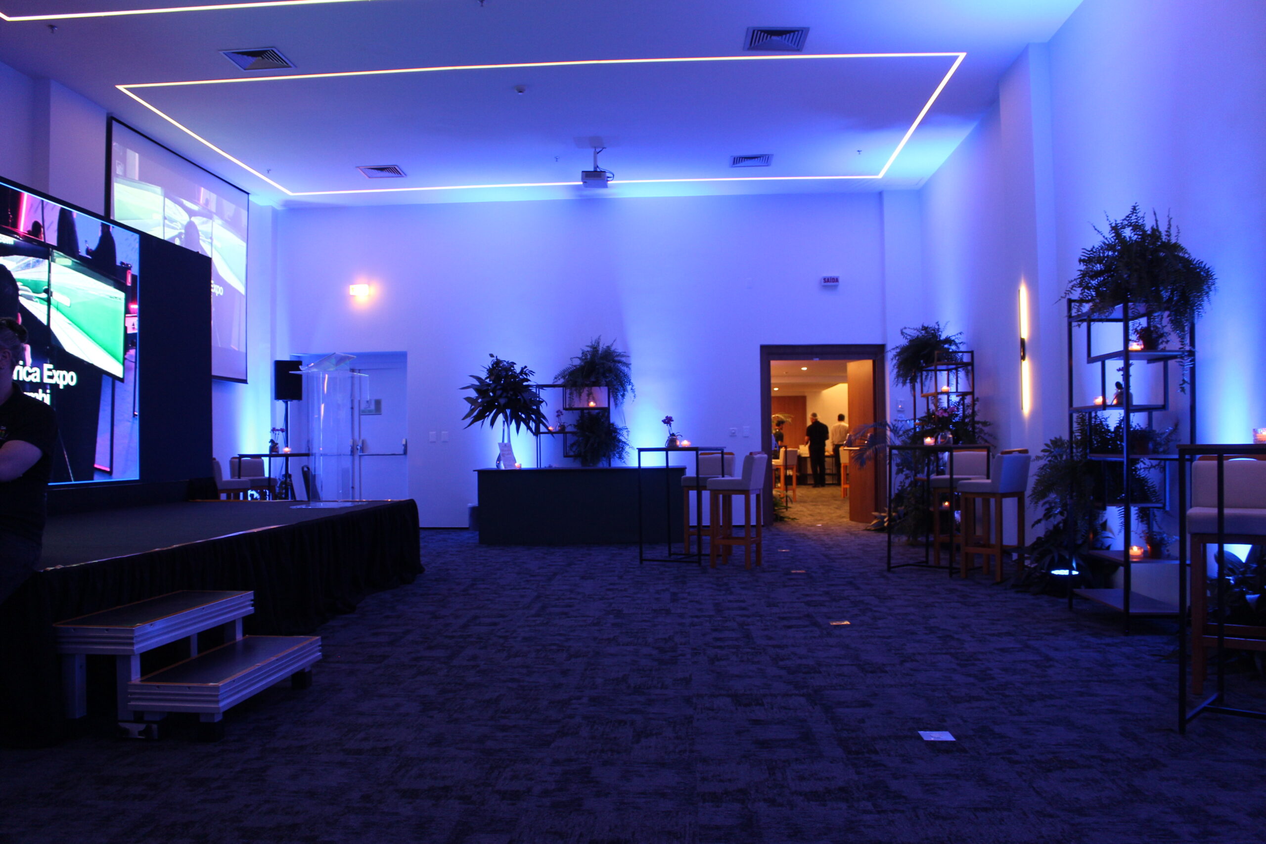 Foto 1: A entrada para a nova sala de evento; Foto 2: O novo espaço de evento pode ser organizado em vários formatos (Fotos: Divulgação)